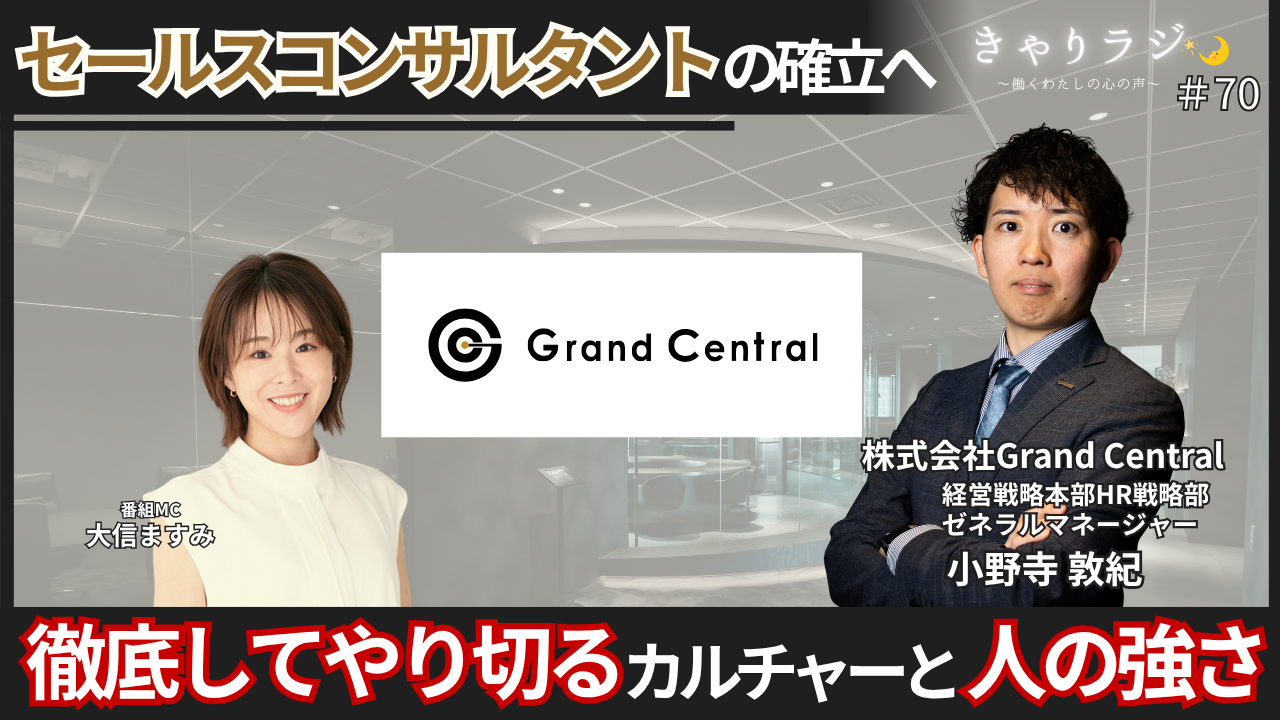 今回の「きゃりラジ」は、セールスコンサルティングの領域で急成長を遂げる株式会社グランドセントラルより、ジェネラルマネージャーの小野寺敦紀さんをお迎えしました。