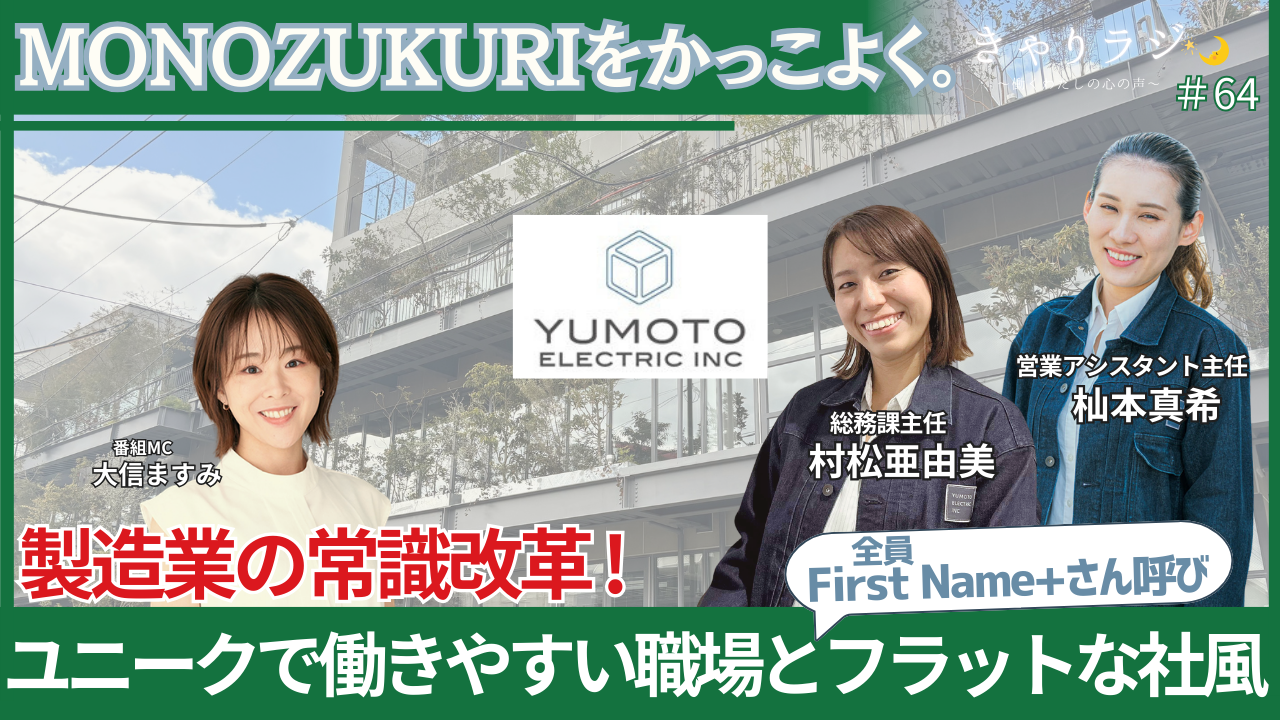 【きゃりラジ】【製造業の革命】「MONOZUKURIをかっこよく。」12期連続増収を支える、ユニークで働きやすい職場とフラットな社風とは(ゲスト:湯本電機株式会社)